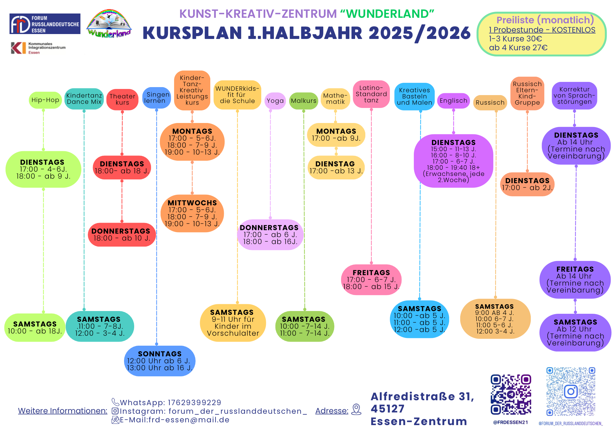 Unserer Kunst- Kreativ Zentrum „Wunderland“ ist einer der bedeutungsvollen Projekte des Forums Russlanddeutschen in Essen e.V., in dem Kurse für Kinder und Jugendliche angeboten werden: Basteln, Tanzen, Malen, Theater, Sprachen lernen.